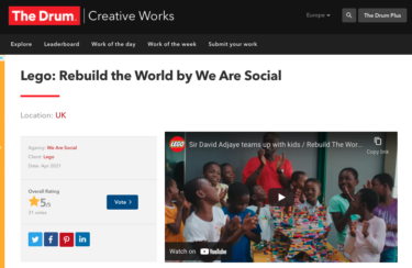 The Lego Group has teamed up with We Are Social Studios and three renowned creators from the fields of art, architecture and film as part of its ongoing ‘Rebuild the World’ campaign.